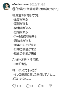 私自身、21世紀の始まりとほぼ同時期に教員になり、2023年に退職しました。「休憩ナニソレ美味しいの?」という状態は、嫌と言うほど経験しています。